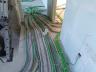 En vert à gauche, c'est les RJ45, à droite (en haut et en bas), c'est les arrivées courants et BUS. Et vous ne voyez pas, à droite, il y a un autre paquet de gaines rien que pour l'alarme.
